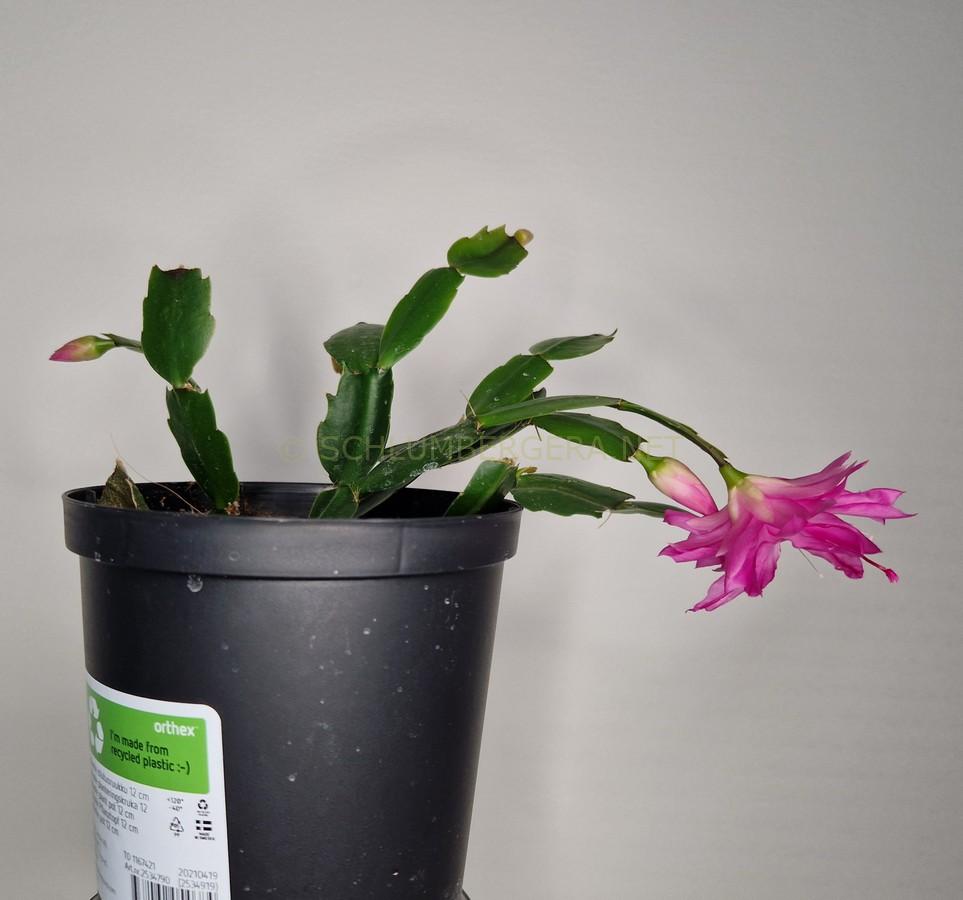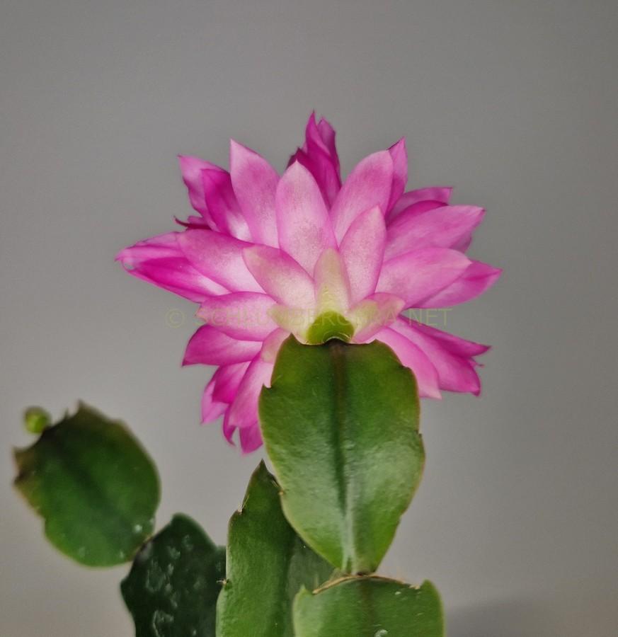 | color unknown | yes | attractive, double, medium size, solid color flowers havelong, acutely tipped petals. Petal counts are higher than normal. Petal bases to mid centers are very light pink suffusing to light mauve pink, darkening slightly toward margins and apexes. Apical petals can have side notching and some can exhibit stigma staining. Stamens are few in number. The magenta-red style supports a magenta-pink stigma. Style stalk is contorted unlike the straight or slightly curved styles of normal flowers. |