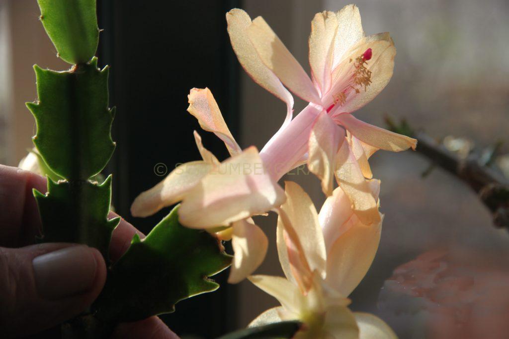 | EPIG 82: 23-32. 2019 | the thick dark green phylloclade width 2.0–4.4 cm., length 3.3–5.7 cm. Growth habit is erect. Plant is reported to be pollen sterile, but has been used as a pod parent. Plant is polyploid (6N or 8N). Essentially, Cambridge is the result of a self-cross as 'Christmas Flame' is a sport of 'Gold Charm'. 1988. |