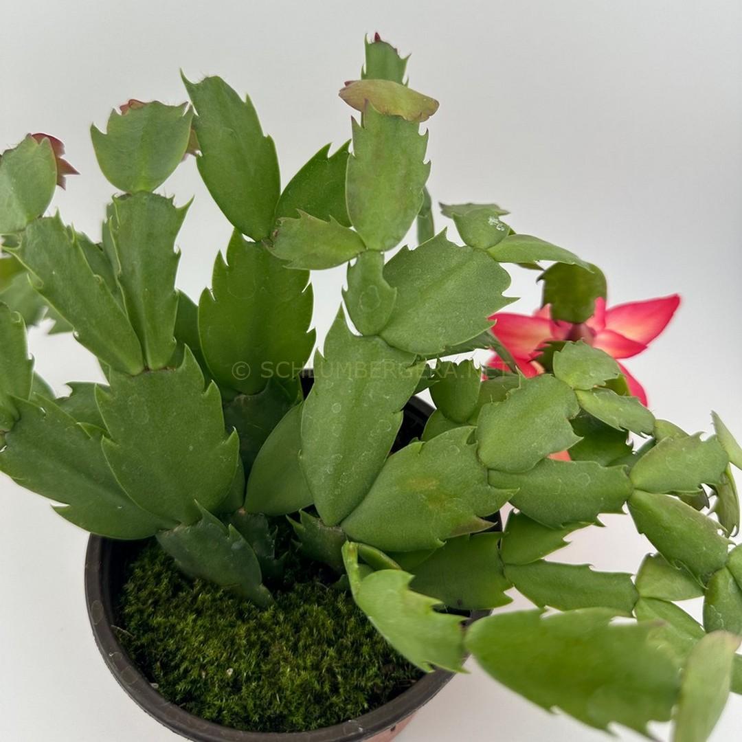| M | flat dentated | ICRA Registration | small phylloclades are medium green, with a matte surface. Margins are dentate, with 2–4 forward-facing dentations along each margin toward the apex. Areole notches appear moderate in depth. Phylloclades are flat and broadly oblong, tapering slightly toward the apex. Margins are straight to slightly undulating. Midribs are not strongly pronounced. The plant exhibits a pendant growth habit. |